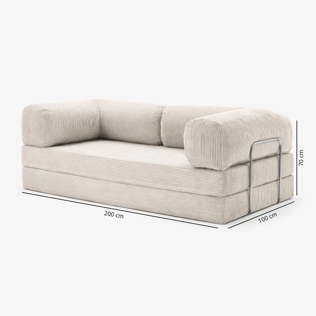 Rembourrage : mousse haute densité. Housse déhoussable, nettoyage à la main recommandé.
